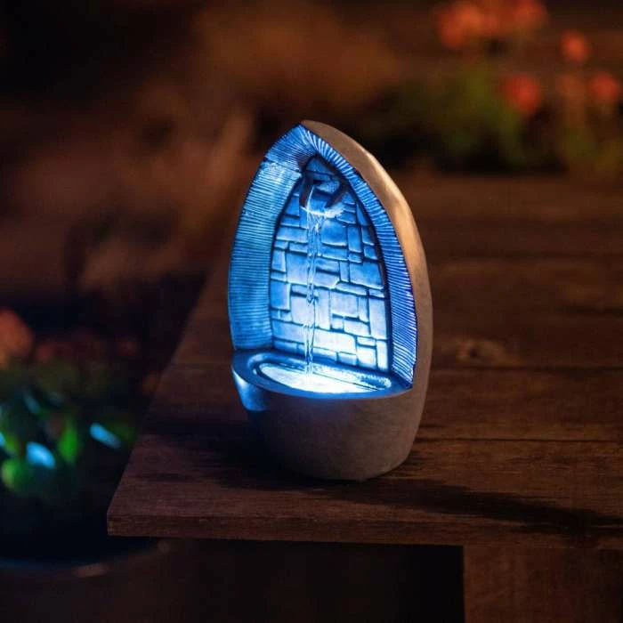 Lit from underneath like all the best gothic architecture, this cascade water feature is made from UV- and frost-resistant polyresin (to resist life’s wears and tears) and cast in the shape of a stone arch. With an internal water reservoir, you can place this on any floor or table as an interesting talking point and calming noise maker. And, with LED lights to illuminate the water flow and feature, you can enjoy every part of this fountain come day or night.
