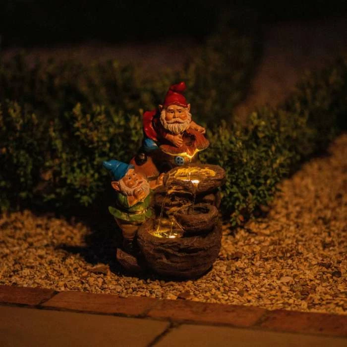 It’s a good thing these gnomes haven’t heard of guttering, otherwise this cascade wouldn’t go much further than the roof! As it is, the water keeps pouring with this cascade water feature made from UV- and frost-resistant polyresin (to resist life’s wears and tears) cast in the shape of gnomes, toadstool homes and stone-effect pools. Featuring a four-level cascade and water-filled reservoir, this water feature will be a great talking point for any garden, and all it needs is a sunny spot to get the water flowing. And, with LED lights to illuminate the water flow and feature, you can enjoy every part of this fountain come day or night (with battery backup!).