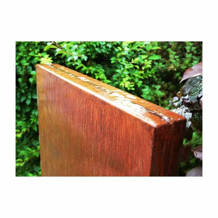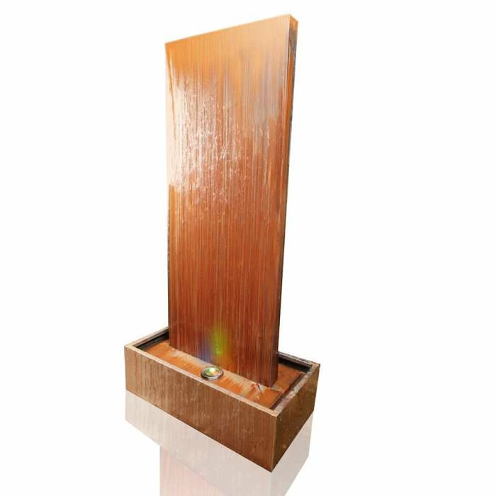 This magnificent water wall feature is fully self-contained and manufactured from Corten steel, which provides it with its spectacular unique appearance. As water flows gracefully down both sides of the feature the Corten steel reacts to create a layer of rust, thereby oxidising the surface to provide weatherproof and corrosion-resistant qualities as well as a striking rustic aesthetic. Weathered steel is quickly becoming a staple of modernistic architecture and the rapturous talking point of designers, praised for its unique contemporary style.