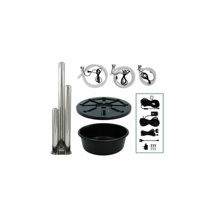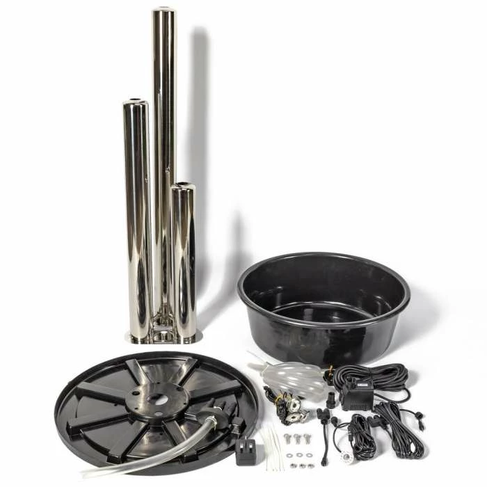 H121cm 3 Polished Tubes Stainless Steel Water Feature with Lights | Indoor/Outdoor Use by Ambienté