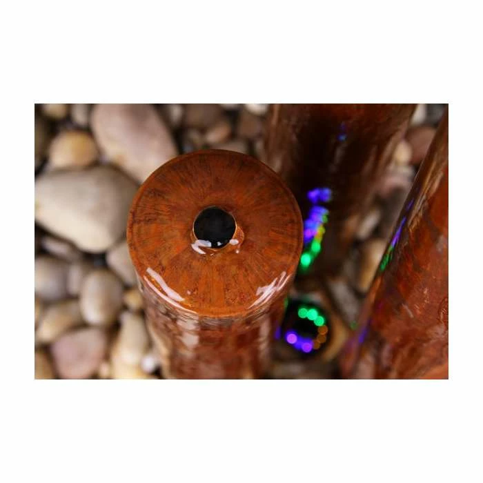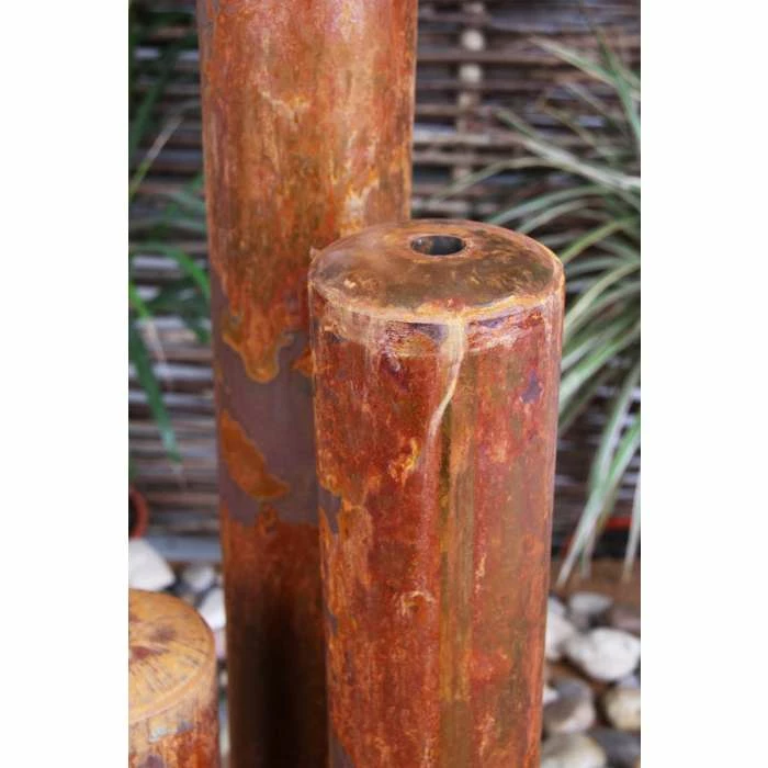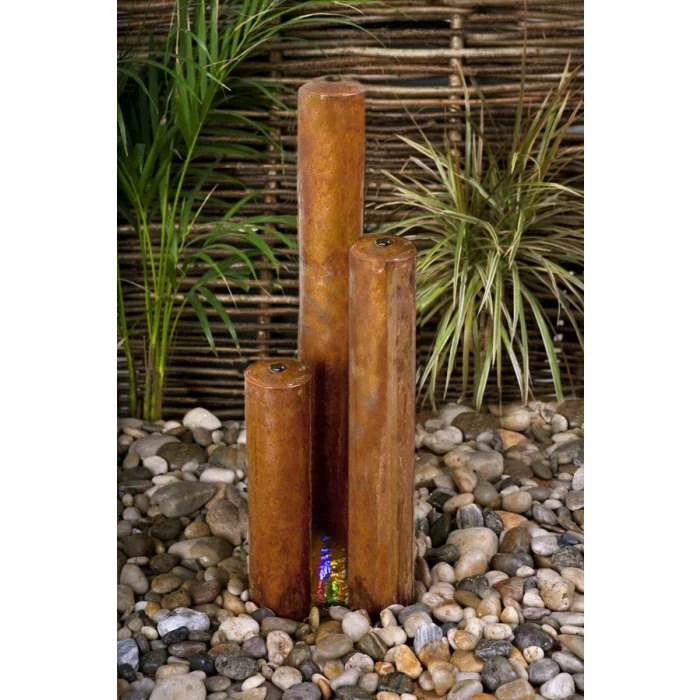 H135cm 3-Tiered Tubes Corten Steel Water Feature with Colour LEDs by Ambienté