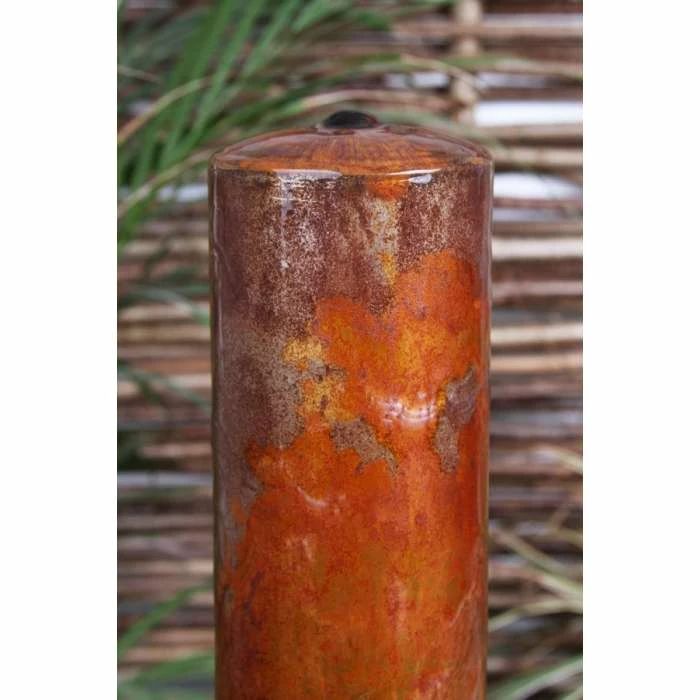 This water feature starts off looking like any other steel feature. However, after just a few days of use, it will develop a rust-like surface that also has a protective layer. This layer protects against further corrosion, and it is completely unique, so no two features are the same.
