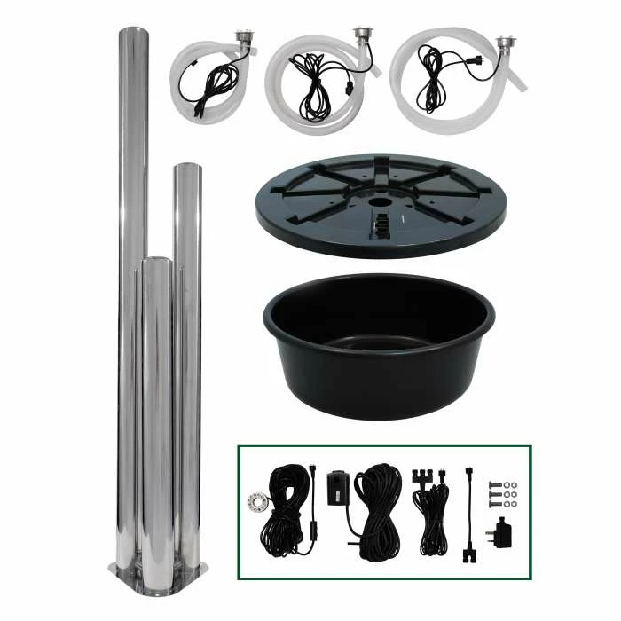H156cm 3 Polished Tubes Stainless Steel Water Feature with Lights | Indoor/Outdoor Use by Ambienté