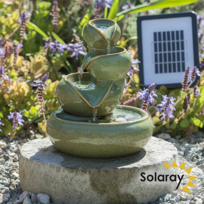 | Elegant Design This water feature will create a peaceful scene in your garden or home, delighting your friends and guests. The ceramic surface has the colour of pale olives, the blend of shiny greens are a tasteful combination. |