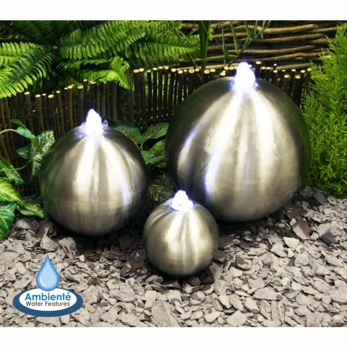 This stainless steel feature would be as at home indoors as it would out. Manufactured in high quality stainless steel. The water is pumped to the top of the sphere and then gently descends down the sides of the sphere with very little noise. Each sphere comes with white LED’s and provides a stunning effect during day and night.