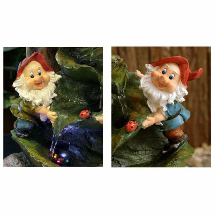 This highly detailed water feature will look great in any garden or home and is certain to create a fantastic point of interest wherever you decide to place it. Watch these charming woodland gnomes collect trickling cascades of water into leaves illuminated by mesmerising LEDs. Crafted from polyresin, this easy to install self-contained feature is UV and frost resistant.