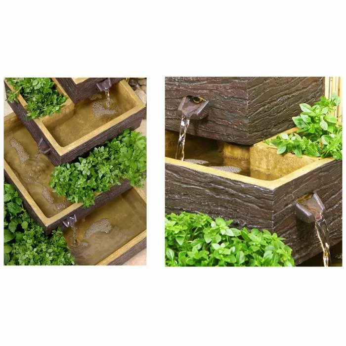 Add a stylish country touch to your flower and herb garden with this lovely cascading feature. Grow your herbs, flowers and small vegetables within the pockets of this modern wood effect tiered water feature. Water cascades between each layer, and looks great when fully planted in both country and urban settings.
