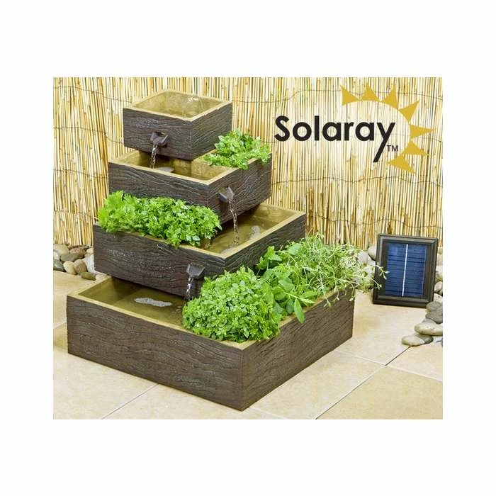 H42cm Dalton 4-Tier Cascading Solar Water Feature & Herb Planter by Solaray