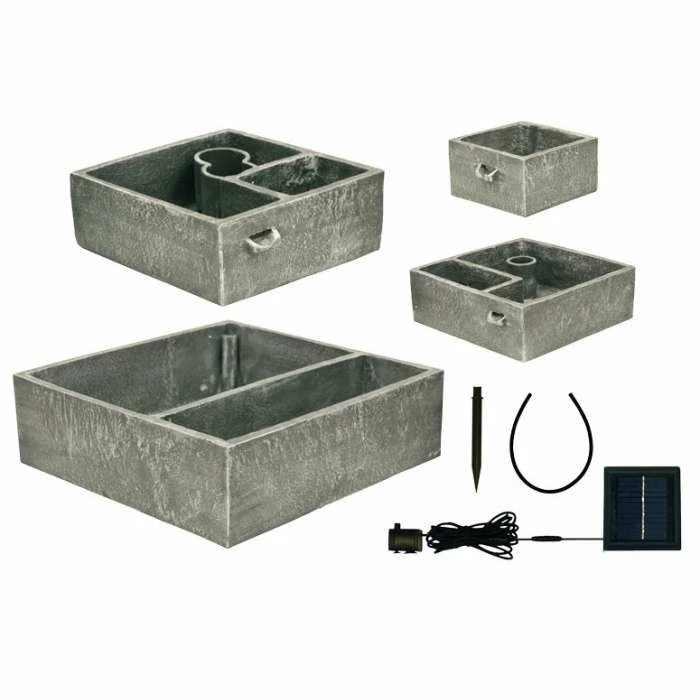 This modern, chic water feature cleverly disguised to appear as fine quality granite stone is actually made from high quality polyresin material, which is lighter and more practical than stone. Combining classic looks and modern manufacturing techniques, polyresin is both frost and UV resistant, helping this water feature to withstand the elements. Its cast stone effect finish makes it ideal for outdoor use. This feature is entirely self-contained including the pump and internal reservoir.