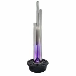 H185cm 3 Tubes Stainless Steel Water Feature with Colour LEDs | Indoor/Outdoor Use by Ambienté