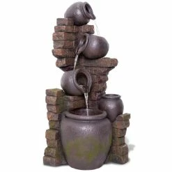 H119cm Regal 4-Tier Oil Jar Water Feature with Lights | Indoor/Outdoor Use by Ambienté