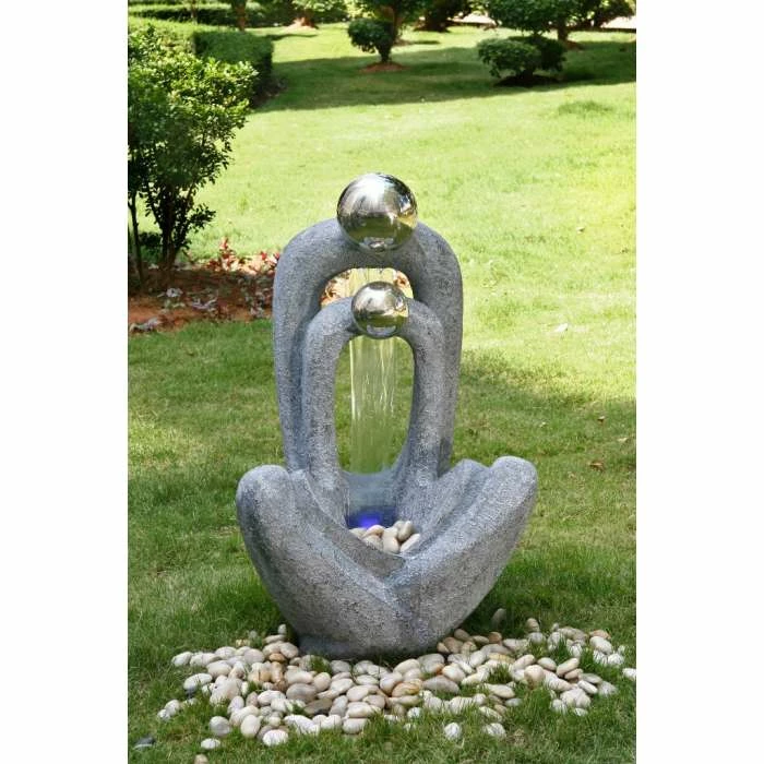 Meditating Couple 2 Stainless Steel Spheres Water Feature with Light